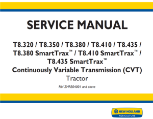 New Holland T8.320 / T8.350 / T8.380 / T8.410 / T8.435 / T8.380 SmartTrax / T8.410 SmartTrax / T8.435 SmartTrax Continuously Variable Transmission (CVT) Tractor Service Repair Manual (PIN ZHRE04001 and above)