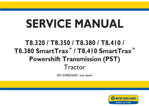 New Holland T8.320 / T8.350 / T8.380 / T8.410 / T8.380 SmartTrax / T8.410 SmartTrax Powershift Transmission (PST) Tractor Service Repair Manual (PIN ZHRE04001 and above)