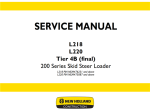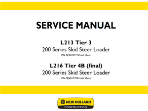 New Holland L213 Tier 3 Skid Steer Loader, L216 Tier 4B (final) Skid Steer Loader Service Repair Manual