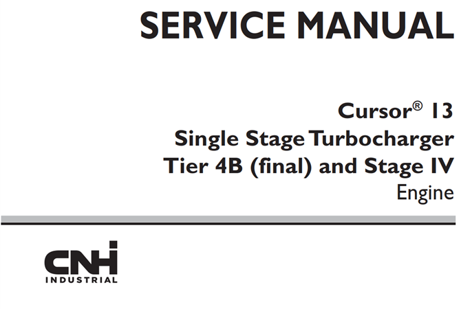 Original Factory Service Repair Manual for the CNH Cursor 13 Single Stage Turbocharger Tier 4B (final) and Stage IV Engine.