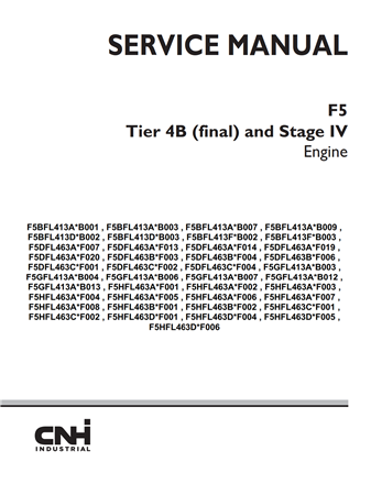 Original Factory Service Repair Manual for the CNH F5 Tier 4B (final) and Stage IV Engine.