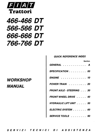 Original Factory Service Repair Manual for the Fiat Trattori 466, 466 DT, 566, 566 DT, 666, 666 DT, 766, 766 DT Tractors.