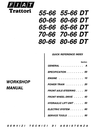 Original Factory Service Repair Manual for the Fiat Trattori 55-66, 55-66 DT, 60-66, 60-66 DT, 65-66, 65-66 DT, 70-66, 70-66 DT, 80-66, 80-66 DT Tractors.