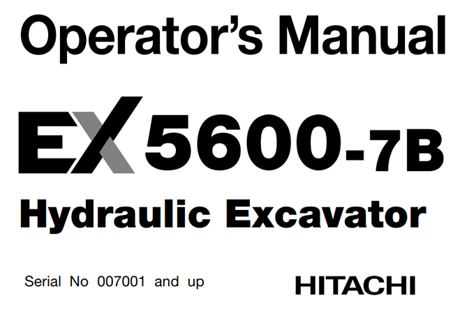 Original Factory Operator’s Manual for the Hitachi EX5600-7B Hydraulic Excavator.
