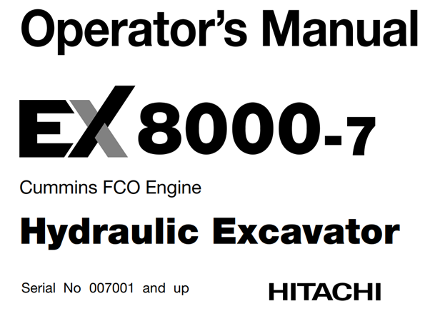 Hitachi EX8000-7 Hydraulic Excavator (Cummins FCO Engine) Operator’s Manual