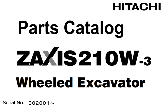 This Parts Catalog outlines EVERY part on your Hitachi ZAXIS 210W-3 Wheeled Excavator.