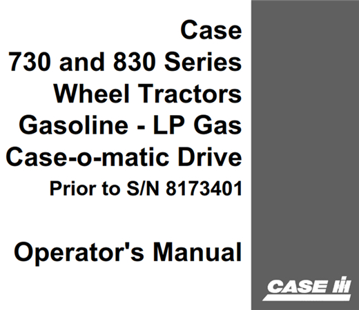 Original Factory Operator’s Manual for the J.I. Case 730 & 830 Series Wheel Tractors Gasoline – LP Gas, Case-o-matic Drive.