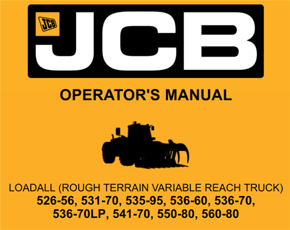 Original Factory Operator’s Manual for the JCB 526-56, 531-70, 535-95, 536-60, 536-70, 536-70LP, 541-70, 550-80, 560-80 Loadall (Rough Terrain Variable Reach Truck).