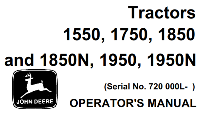 Original Factory Operator’s Manual for the John Deere 1550, 1750, 1850, 1850N, 1950, 1950N Tractors.