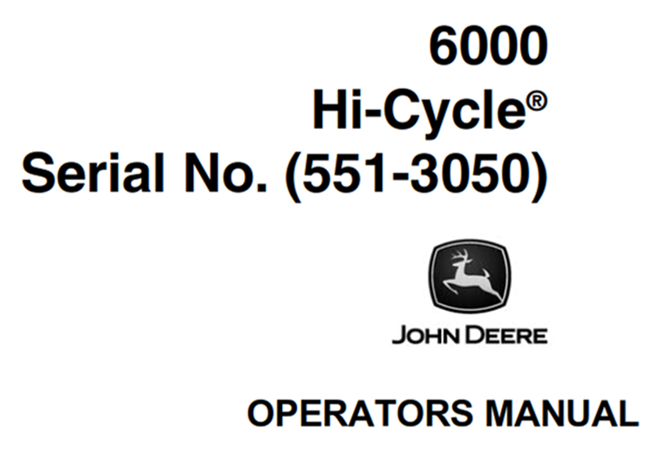 This manual offers full information you need for operate and maintain your John Deere 6000 Hi-Cycle.