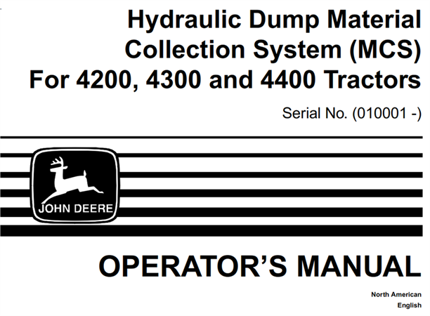 This manual offers full information you need for operate and maintain your John Deere Hydraulic Dump Material Collection System (MCS).