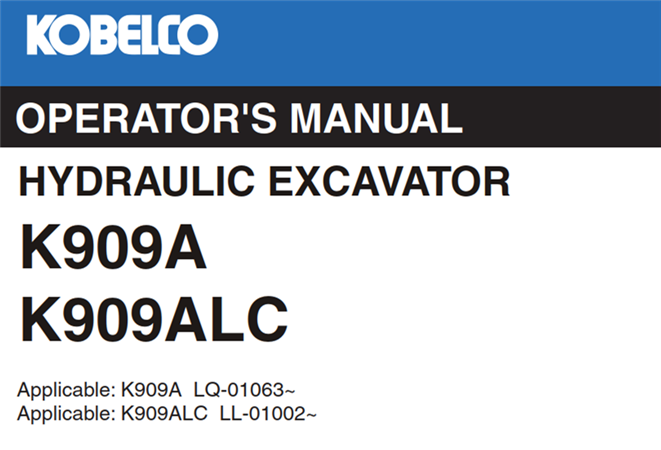 Kobelco K909A, K909ALC Hydraulic Excavator Operator’s Manual