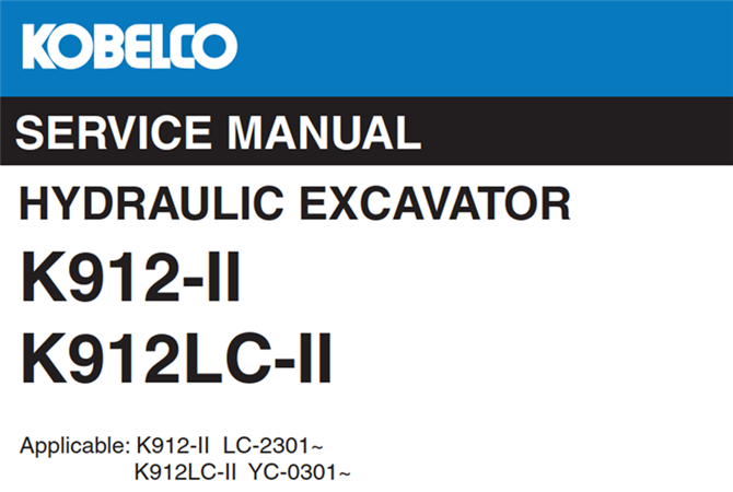 Original Factory Service Repair Manual for the Kobelco K912-II, K912LC-II Hydraulic Excavator.