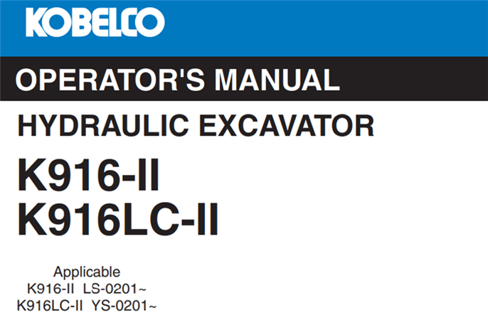 Kobelco K916-II, K916LC-II Hydraulic Excavator Operator’s Manual