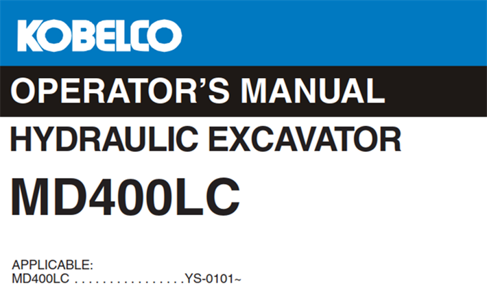 Original Factory Operator’s Manual for the Kobelco MD400LC Hydraulic Excavator.