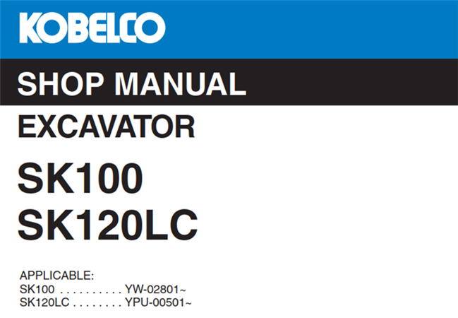 Original Factory Service Repair Manual for the Kobelco SK100, SK120LC Excavator.
