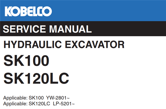 Original Factory Service Repair Manual for the Kobelco SK100, SK120LC Hydraulic Excavator.