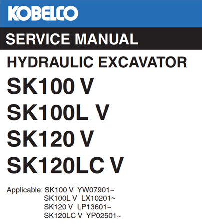 Kobelco SK100 V, SK100L V, SK120 V, SK120LC V Hydraulic Excavator Service Repair Manual