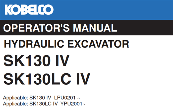 Original Factory Operator’s Manual for the Kobelco SK130 / SK130LC MARK IV Hydraulic Excavator.