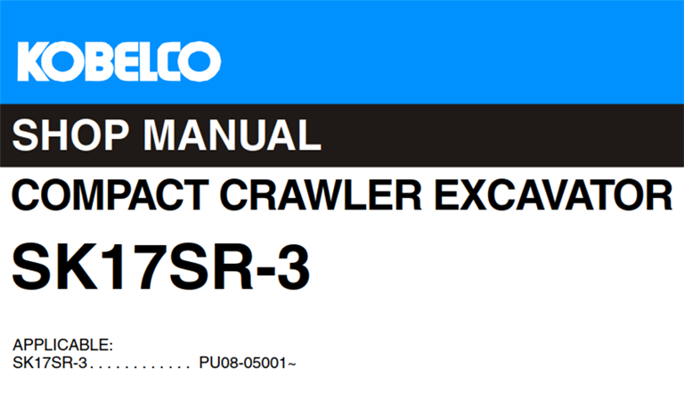 Original Factory Service Repair Manual for the Kobelco SK17SR-3 Compact Crawler Excavator.