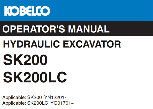 Original Factory Operator’s Manual for the Kobelco SK200, SK200LC Hydraulic Excavator.