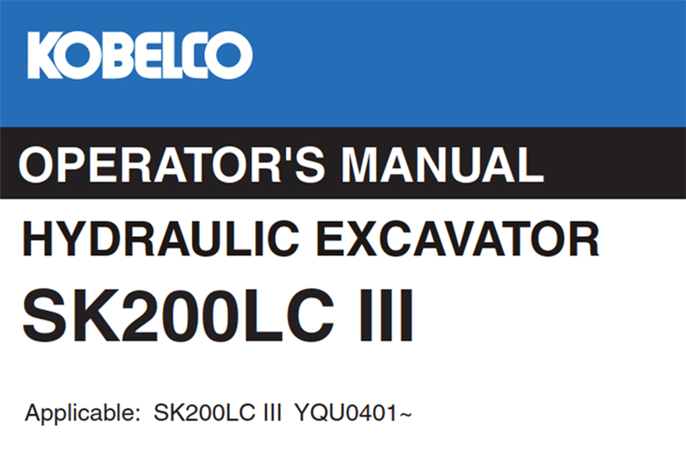 Original Factory Operator’s Manual for the Kobelco SK200LC III Hydraulic Excavator.