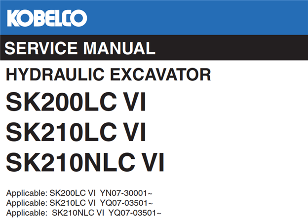 Original Factory Service Repair Manual for the Kobelco SK200LC VI, SK210LC VI, SK210NLC VI Hydraulic Excavator.