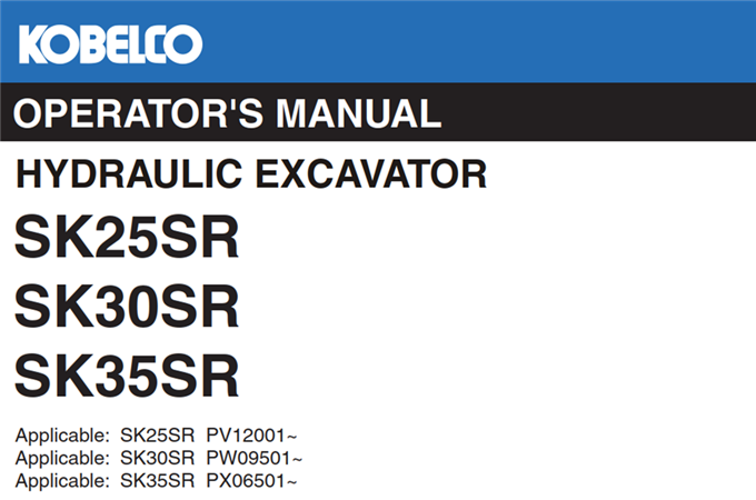 Original Factory Operator’s Manual for the Kobelco SK25SR, SK30SR, SK35SR Hydraulic Excavator.