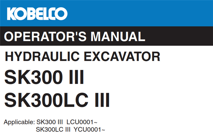 Original Factory Operator’s Manual for the Kobelco SK300 III, SK300LC III Hydraulic Excavator.