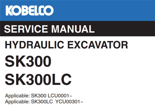 Original Factory Service Repair Manual for the Kobelco SK300, SK300LC Hydraulic Excavator.