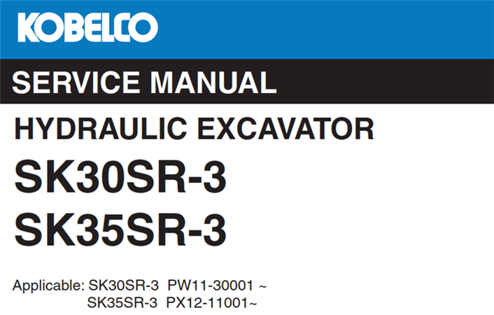 Original Factory Service Repair Manual for the Kobelco SK30SR-3, SK35SR-3 Hydraulic Excavator.
