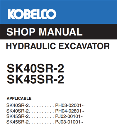Original Factory Service Repair Manual for the Kobelco SK40SR-2, SK45SR-2 Hydraulic Excavator.