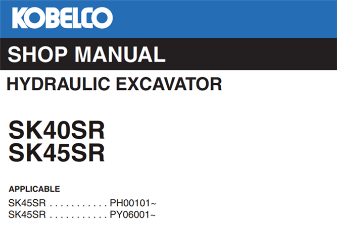 Original Factory Service Repair Manual for the Kobelco SK40SR, SK45SR Hydraulic Excavator.