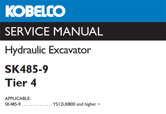 Original Factory Service Repair Manual for the Kobelco SK485-9 Tier 4 Hydraulic Excavator.