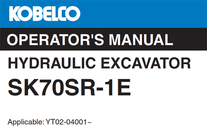 Original Factory Operator’s Manual for the Kobelco SK70SR-1E Hydraulic Excavator.