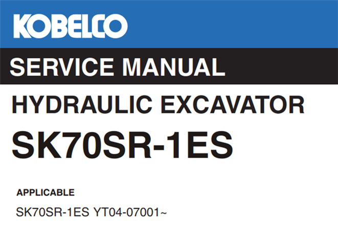 Original Factory Service Repair Manual for the Kobelco SK70SR-1ES Hydraulic Excavator.