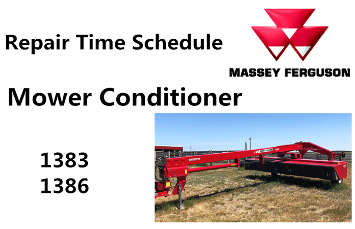 Original Factory Repair Time Schedule Manual for the Massey Ferguson 1383/1386 Mower Conditioner.