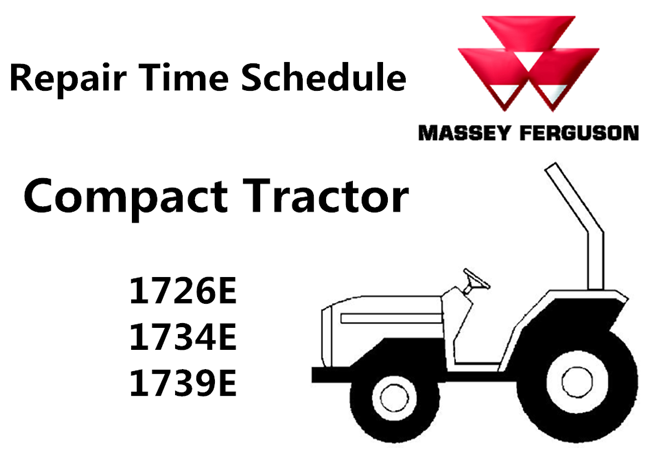 Original Factory Repair Time Schedule Manual for the Massey Ferguson 1726E/1734E/1739E Compact Tractor.