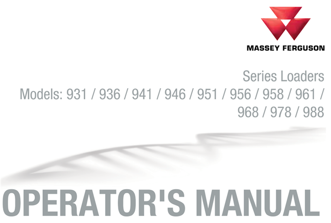 Massey Ferguson 931/936/941/946/951/956/958/961/968/978/988 Loaders Operator’s Manual