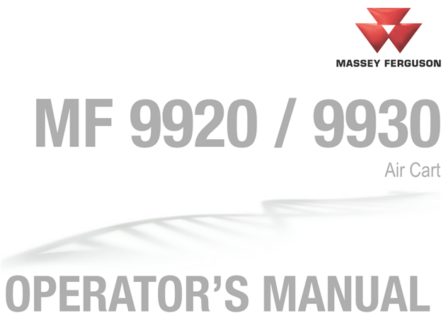 Original Factory Operator’s Manual for the Massey Ferguson 9920/9930 Air Cart.
