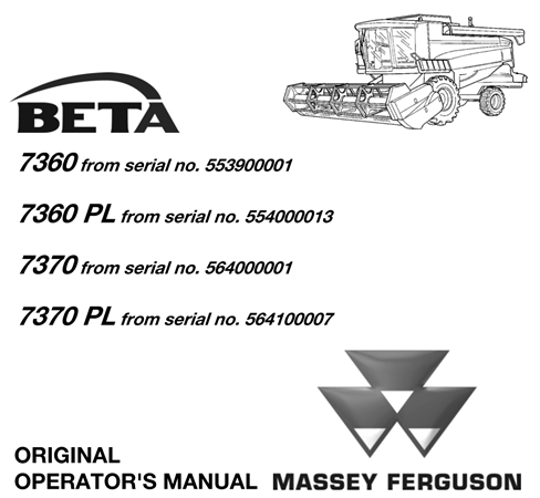 Original Factory Operator’s Manual for the Massey Ferguson Beta 7360, Beta 7360PL, Beta 7370, Beta 7370PL Combines.