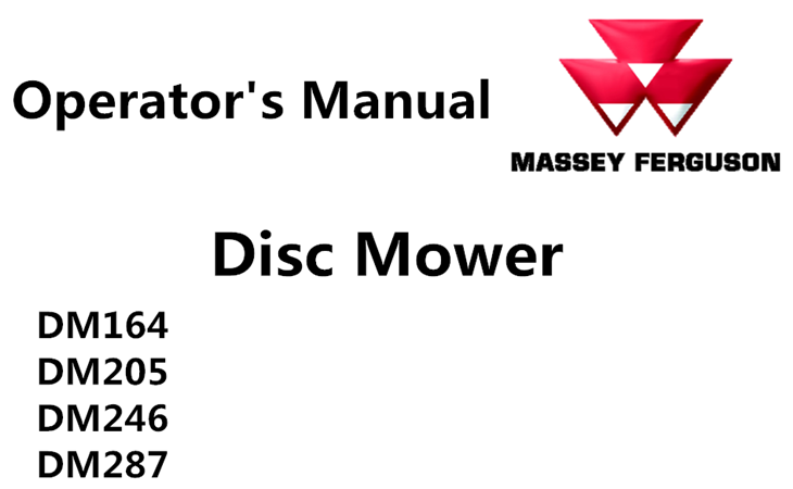 Original Factory Operator’s Manual for the Massey Ferguson DM164, DM205, DM246, DM287 Disc Mower.