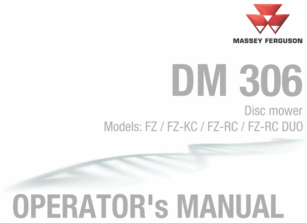 Original Factory Operator’s Manual for the Massey Ferguson DM306 FZ, DM306 FZ-KC, DM306 FZ-RC, DM306 FZ-RC DUO Disc Mower.