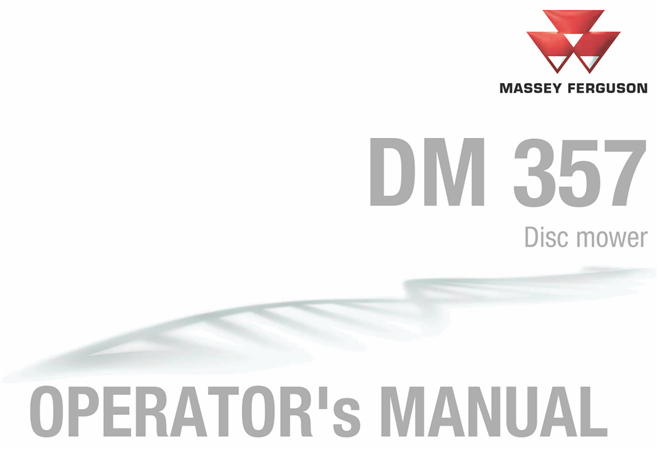 Original Factory Operator’s Manual for the Massey Ferguson DM357 Disc Mower.