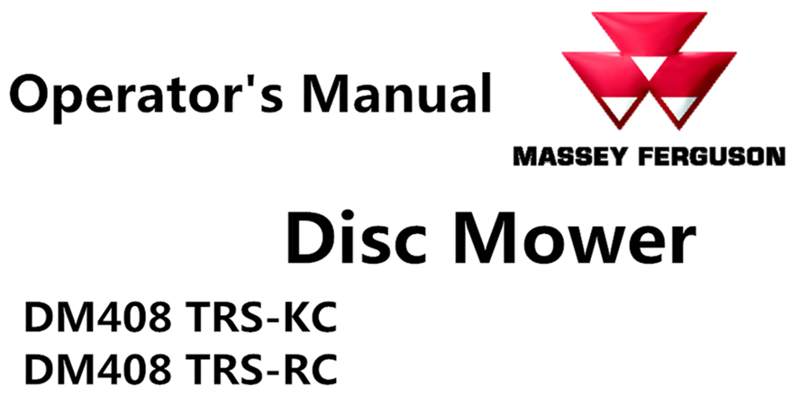 Original Factory Operator’s Manual for the Massey Ferguson DM408 TRS-KC, DM408 TRS-RC Disc Mower.