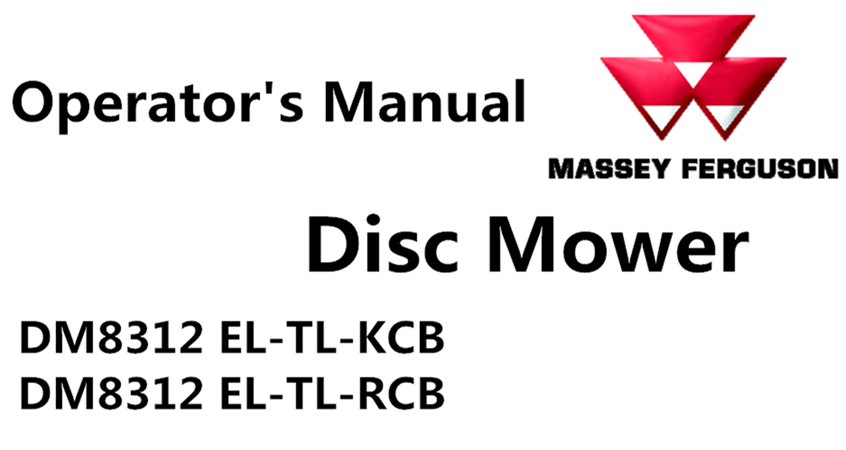 Original Factory Operator’s Manual for the Massey Ferguson DM8312 EL-TL-KCB, DM8312 EL-TL-RCB Disc Mower.