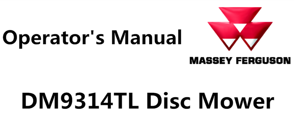Original Factory Operator’s Manual for the Massey Ferguson DM9314TL Disc Mower.