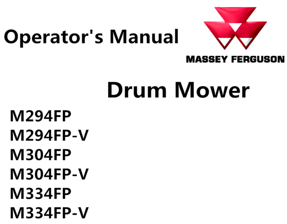 This manual offers full information you need for operate and maintain your Massey Ferguson M294FP, M294FP-V, M304FP, M304FP-V, M334FP, M334FP-V Drum Mower.