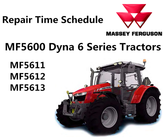Original Factory Repair Time Schedule Manual for the Massey Ferguson MF5600 Dyna 6 Series MF5611, MF5612, MF5613 Tractors.