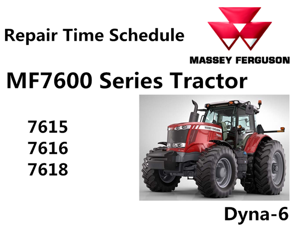 Original Factory Repair Time Schedule Manual for the Massey Ferguson MF7600 Dyna-6 Series Tractors.